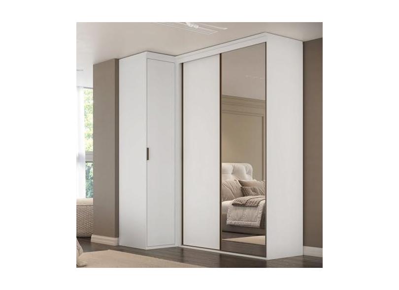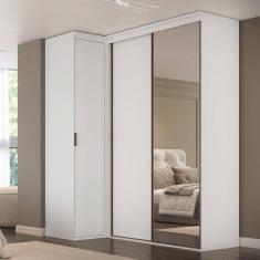 Guarda-roupa de Canto Porta de Correr com Espelho 3 Portas Spacios Branco