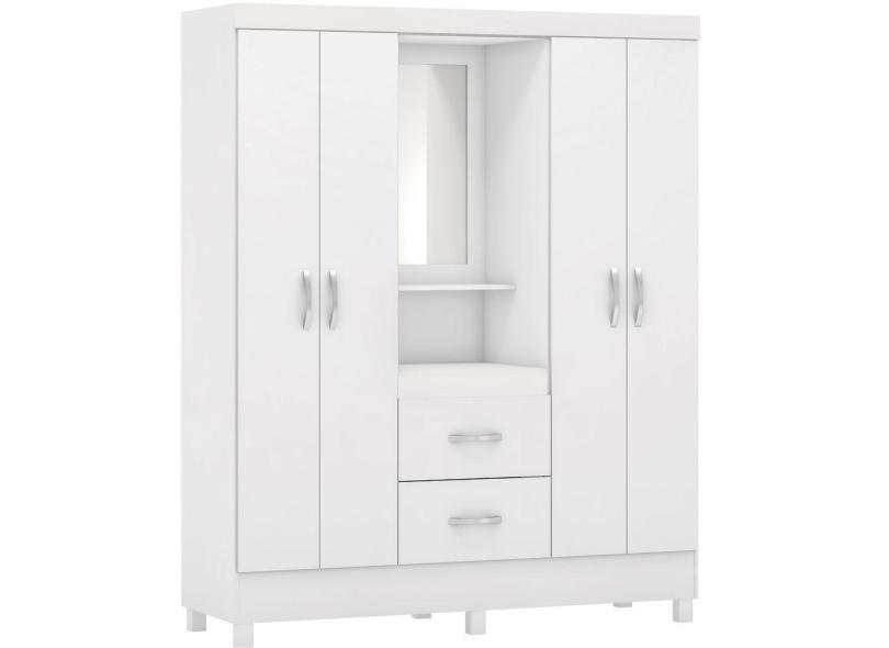 Guarda Roupa Demobile capelinha Lord 4 portas 2 gavetas com penteadeira espelho Branco/Branco Rosa