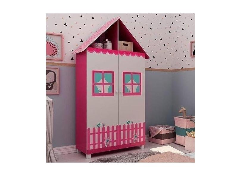 Guarda Roupa Infantil Casinha Com Pés Gelius Móveis Pink Ploc/branco Acetinado