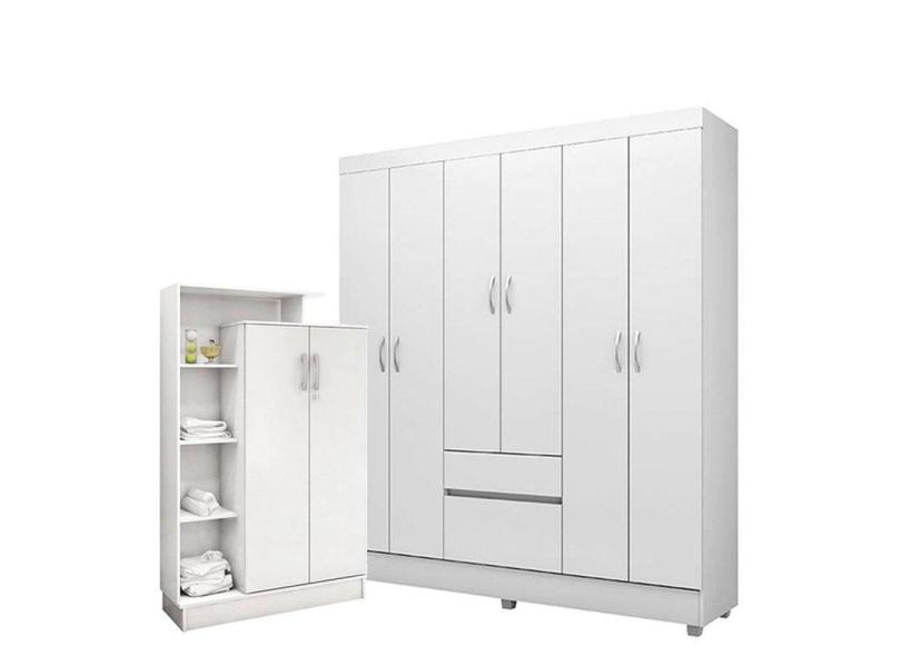 Guarda Roupa Infantil Flash 2 e Armário Multiuso Elite Branco Brilho - Demóbile