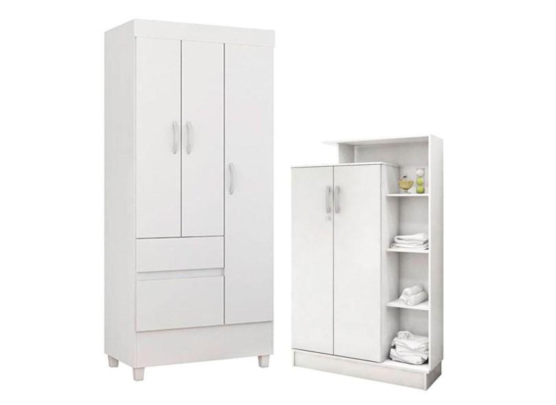 Guarda Roupa Infantil Wind e Armário Multiuso Elite Branco Brilho - Demóbile