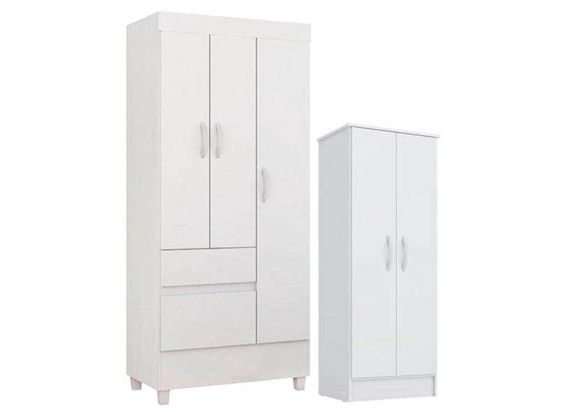 Guarda Roupa Infantil Wind e Armário Multiuso Viena Branco Brilho - Demóbile