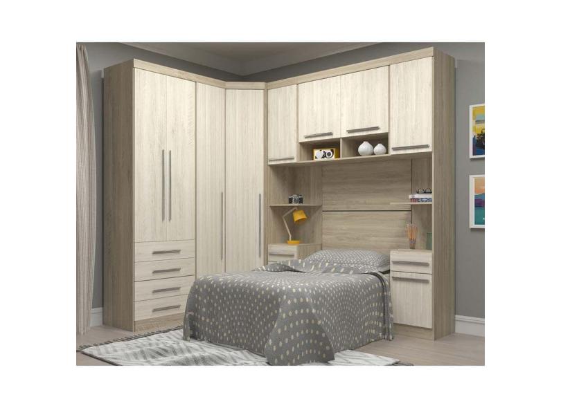 Guarda Roupa Modulado de Canto Solteiro 10 Portas 6 Gavetas Armario Ponte com Cabeceira Master Luciane Móveis