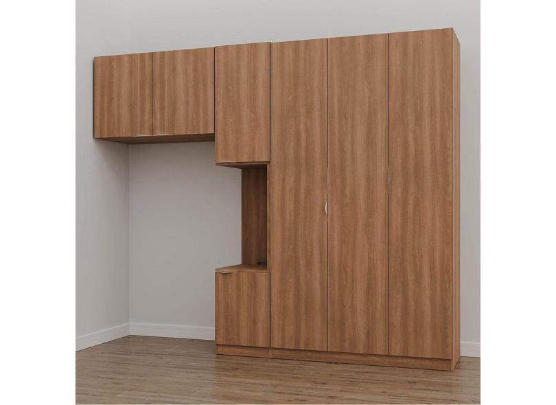 Guarda Roupa Modulado de Solteiro com Mesa de Cabeceira Direita 7 Portas 3 Peças Hera Cabecasa Madei Louro/Cromado/Cromado
