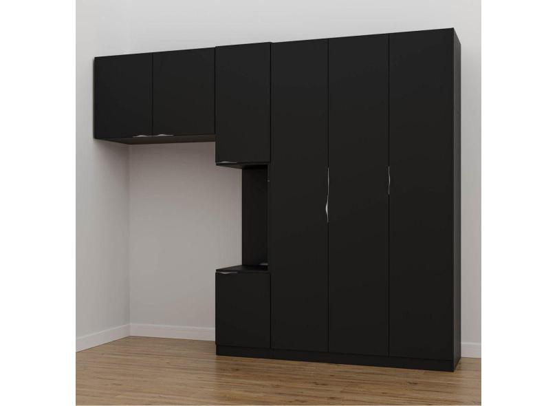 Guarda Roupa Modulado de Solteiro com Mesa de Cabeceira Direita 7 Portas 3 Peças Hera Cabecasa Madei Preto/Cromado