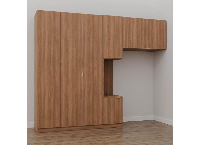 Guarda Roupa Modulado de Solteiro com Mesa de Cabeceira Esquerda 7 Portas 3 Peças Hera Cabecasa Made Louro/Cromado