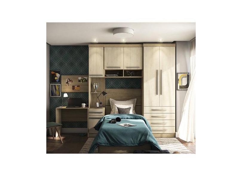 Guarda Roupa Modulado Solteiro 6 Portas 5 Gavetas com Cabeceira e Escr
