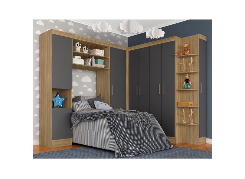 Guarda Roupa Modulado Solteiro Andrea Boreal/grafite - Móveis Arapongas