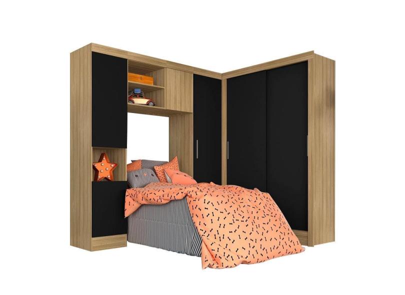 Guarda Roupa Modulado Solteiro Viola Bor/preto - Móveis Arapongas
