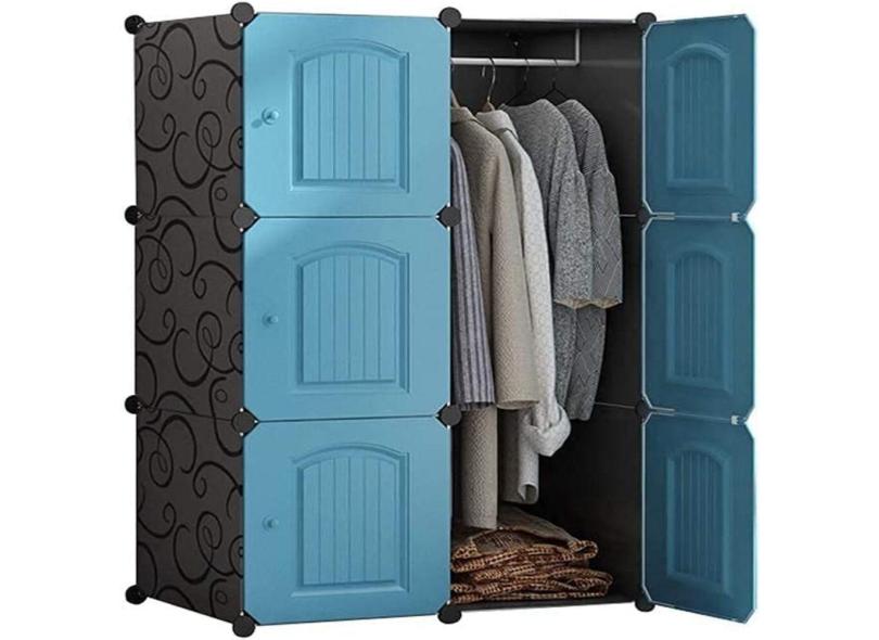 Guarda Roupa Portatil Armario Cabideiro 6 Portas Arara Organizador Modular Azul Luxo