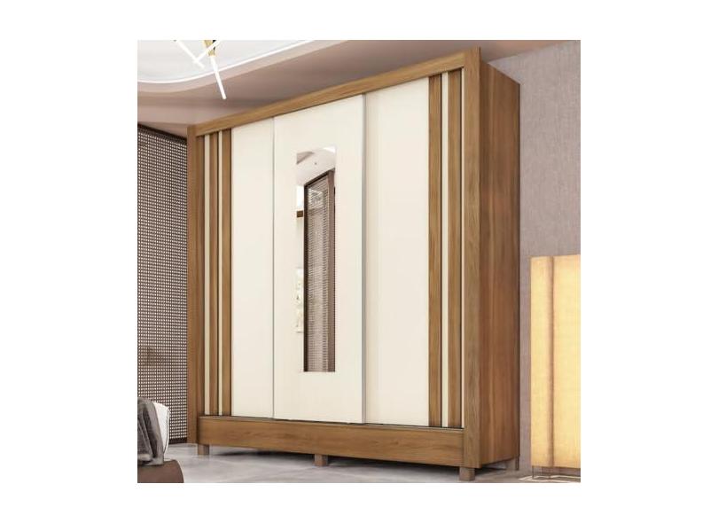 Guarda-Roupa Ravel 3 Portas 2 Gavetas com Espelho Flex Amêndola Touch/Off White - Demóbile