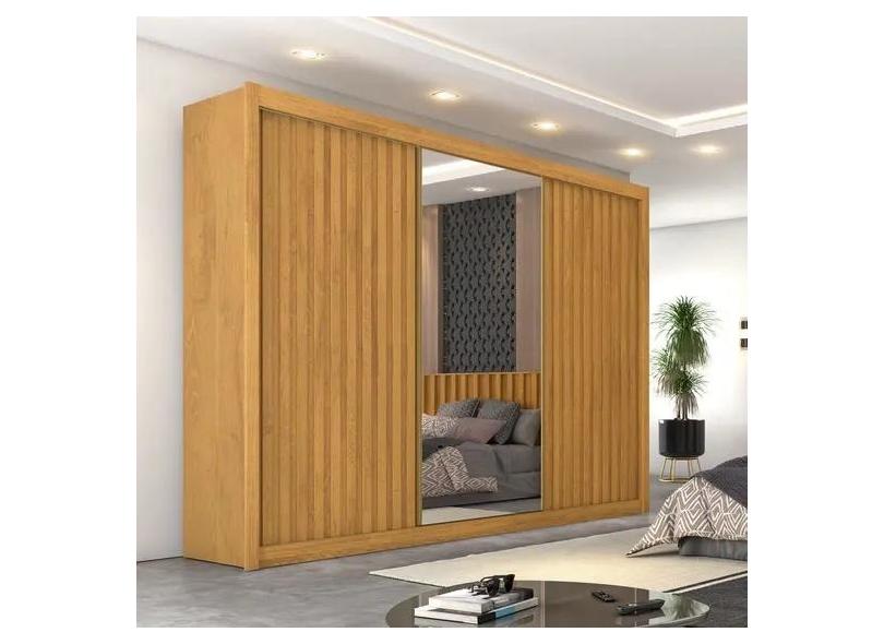 Guarda Roupa Ripado com Espelho 3 Portas 6 Gavetas - Viena-Peroba - Móveis Europa