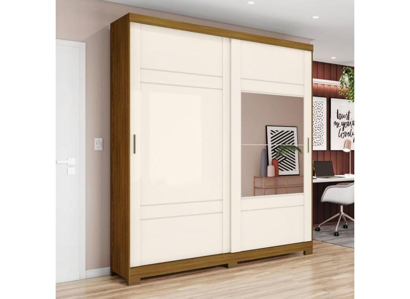 Guarda-Roupa Roupeiro 2 Portas Deslizantes 3 Gavetas Del Mare Henn Marrom/Off White