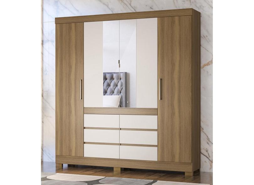 Guarda Roupa Roupeiro Casal 66510 04 Portas 06 Gavetas c/ Espelho Cádis Amendola Touch Off White Demóbile
