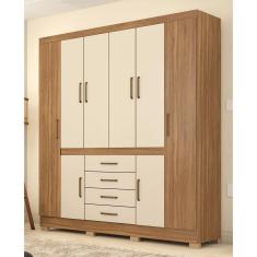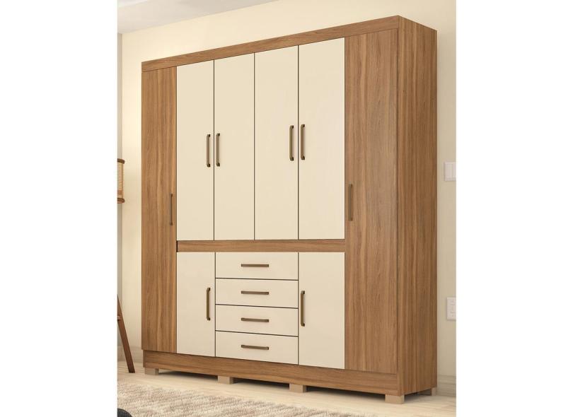 Guarda Roupa Roupeiro Casal 84020 08 Portas 04 Gavetas c/ Espelho New Realce Amendola Touch Off White Demóbile