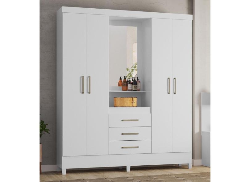 Guarda Roupa Roupeiro Solteiro 43220 04 Portas 03 Gavetas Pérsia Branco Rosa Flex Demóbile