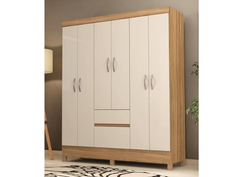 Guarda Roupa Roupeiro Solteiro 62920 06 Portas 02 Gavetas Flash ii Amendola Touch Off White Demóbile