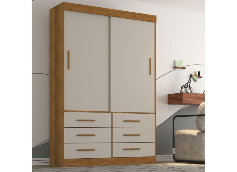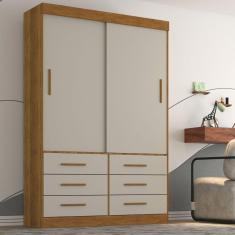 Guarda Roupa Solteiro 2 Portas 6 Gavetas Luana Sallêto Móveis Cinamomo/Off White