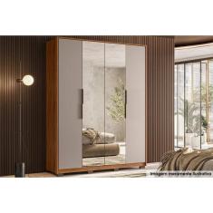Guarda Roupa Solteiro 4 Portas (2 c/ Espelhos) e 3 Gavetas Attore Nogueira/Nude - Demóbile