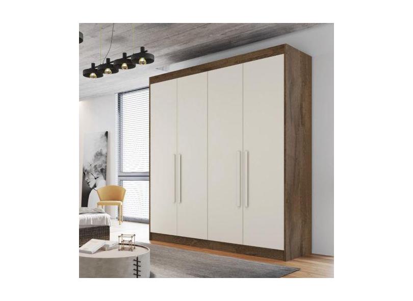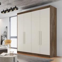 Guarda Roupa Solteiro 4 Portas 3 Gavetas - Nantes-Braúna/Off White - M