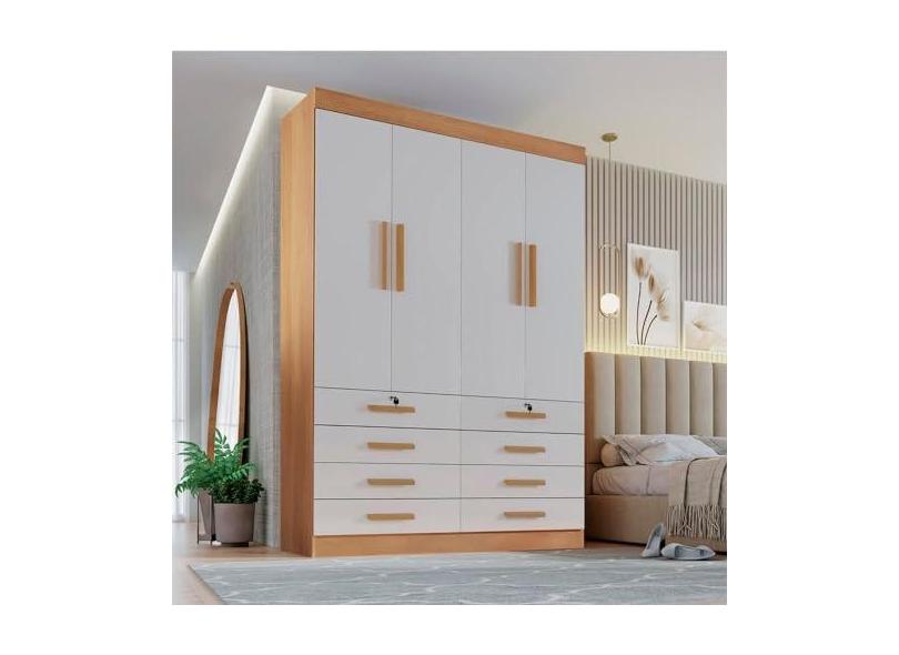Guarda Roupa Solteiro 4 Portas 8 Gavetas Marselha Plus Cinamomo/off White