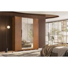 Guarda Roupa Solteiro 4 Portas e 3 Gavetas c/ 2 Espelhos e Pés Attore Amêndola Touch - Demóbile