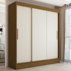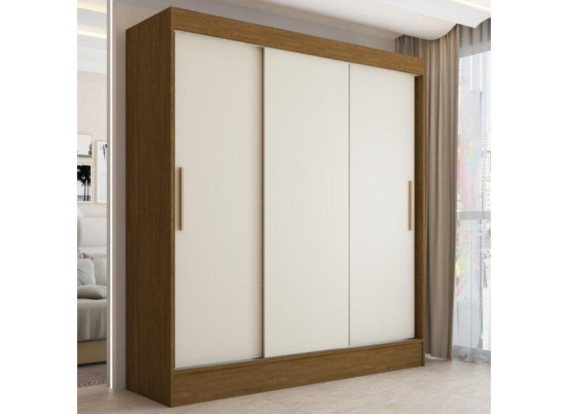 Guarda-Roupa Solteiro Atlanta 3 Portas de Correr 2 Gavetas Cinamomo/Off White - Panorama Móveis