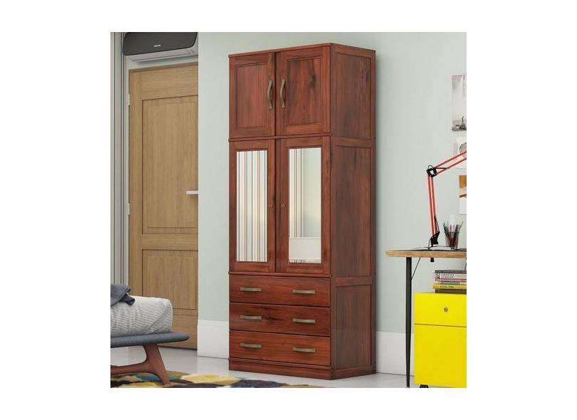 Guarda Roupa Solteiro Com Espelho 4 Portas 3 Gavetas Paris - Lanes Móv