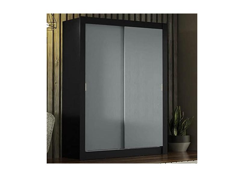 Guarda-roupa Solteiro Madesa Denver 2 Portas de Correr - Preto/cinza