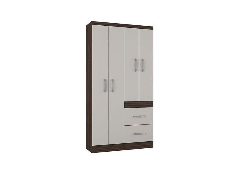 Guarda Roupa Solteiro Milão 4 Portas Chocolate Off White Poquema - Po