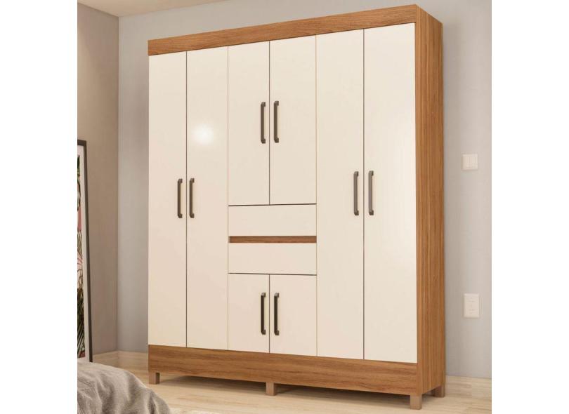 Guarda-Roupa Solteiro Munique 8 Portas 2 Gavetas Amêndola Touch/Off White - Demóbile