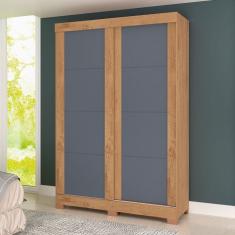 Guarda-Roupa Solteiro Turim 2 Portas 2 Gavetas Canelato Rustico/Grafite/Natural/Off White - Atualle Móveis