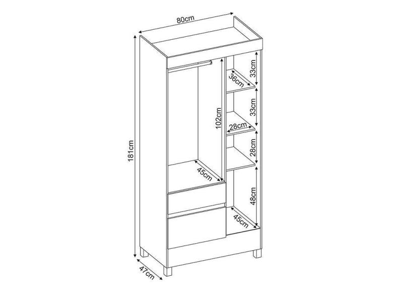 Guarda Roupa Solteiro Wind 3 Portas e 2 Gavetas - Demóbile Branco