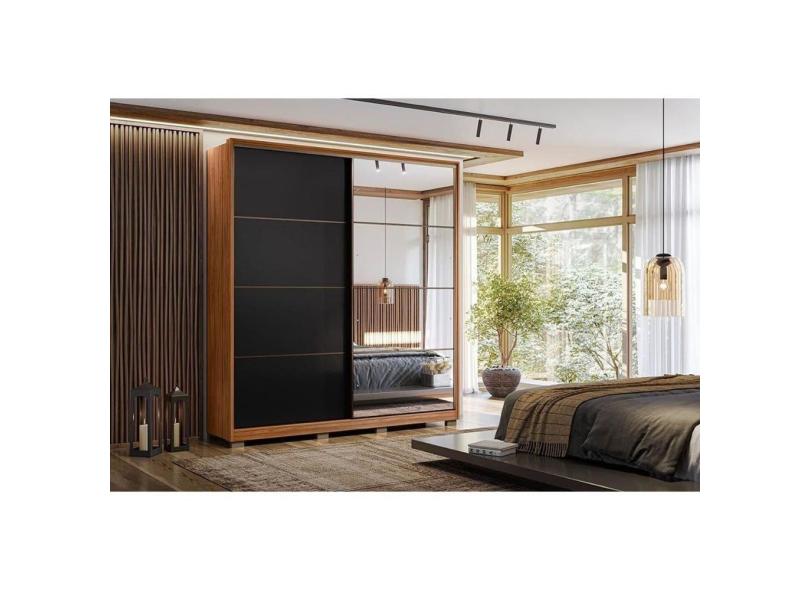 Guarda Roupas 2 Portas de Correr 3 Gavetas c/ Espelho e Pés Belga Flex Amêndola/Amêndola ou Grafito - Demóbile