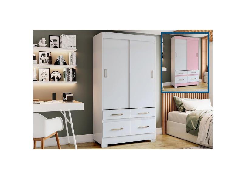 Guarda Roupas 2 Portas De Correr E 4 Gavetas Briz Be25 Branco Rosa Henn