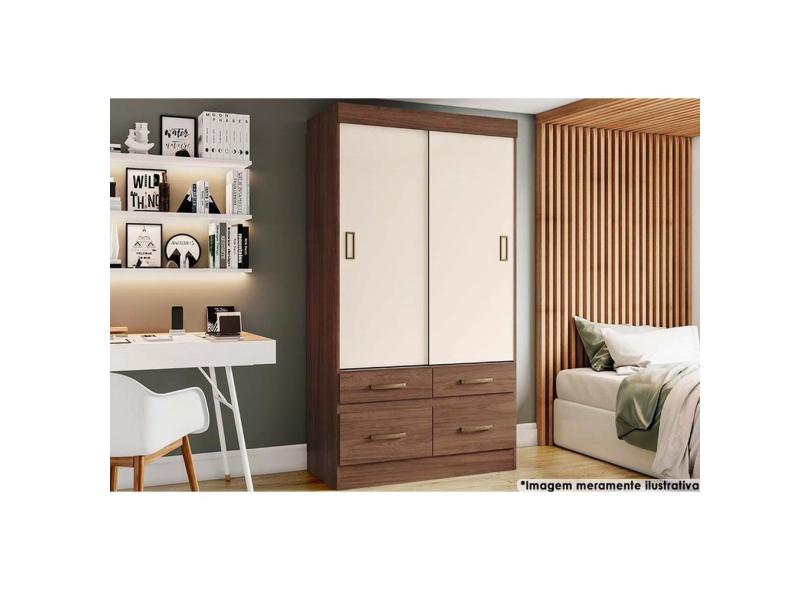 Guarda Roupas 2 Portas de Correr e 4 Gavetas Briz BE25 Flex Castanho/Castanho ou Off White - Henn