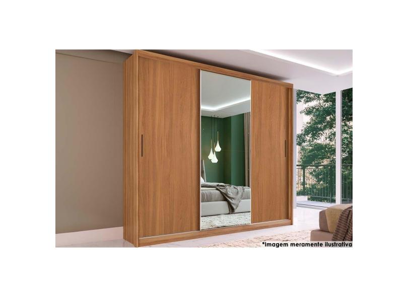 Guarda Roupas 3 Portas De Correr 4 Gavetas 5 Prateleiras C/ Espelho Dalila Amêndola/Off White - Demóbile