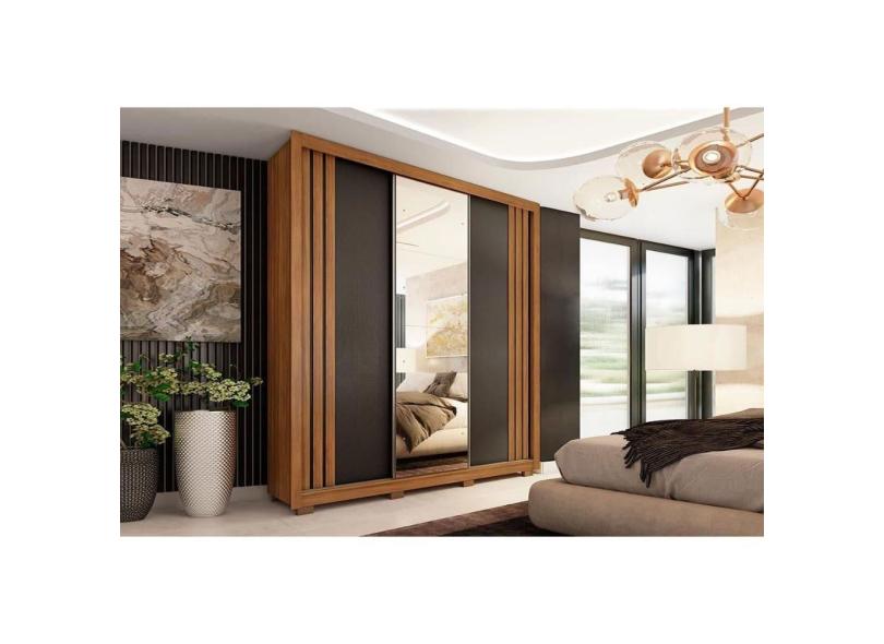 Guarda Roupas 3 Portas de Correr de (1 c/ Espelho) e 2 Gavetas c/ Pés Moema Flex Amêndola/Nude ou Preto - Demóbile