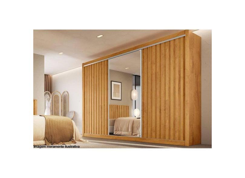 Guarda Roupas 3 Portas de Correr de (2 Ripadas e 1 c/ Espelho) e 6 Gavetas York Peroba - Europa