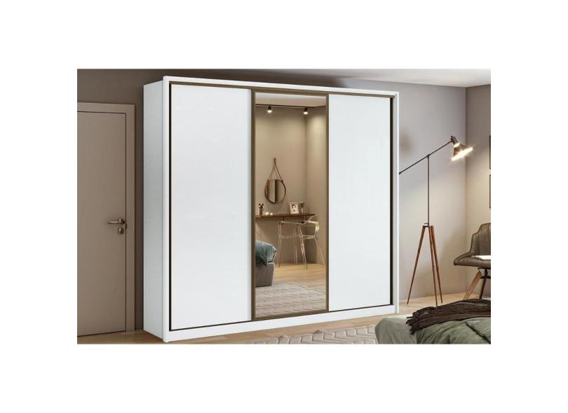 Guarda Roupas 3 Portas de Correr e 6 Gavetas c/ Espelho Spazio Branco - Lopas