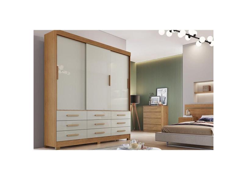 Guarda Roupas 3 Portas de Correr e 9 Gavetas Buriti/Jequitibá Cumaru/Fendi - Novo Horizonte