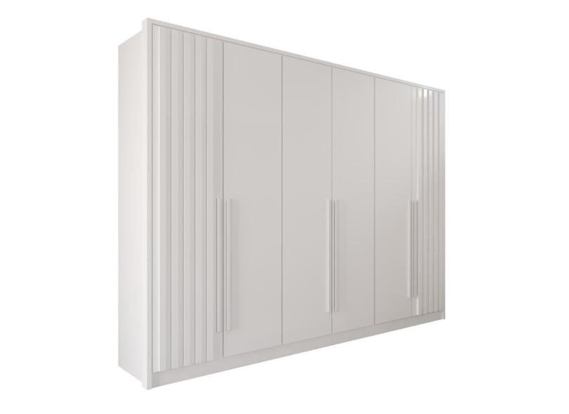 Guarda Roupas Casal 100% Mdf 6 Portas 5 Gavetas Moscou Ripado Neve