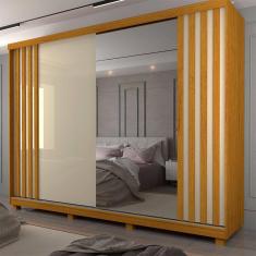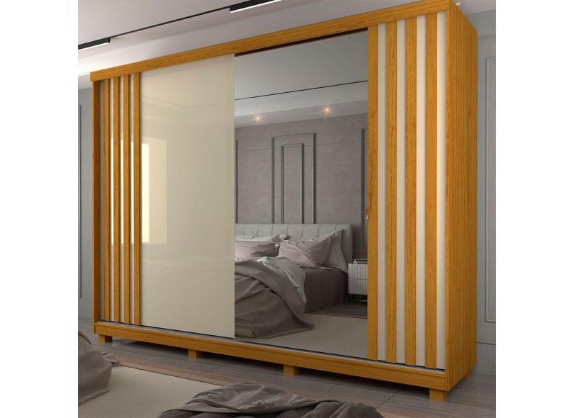 Guarda Roupas Casal Ripado 2 Portas De Correr 1 Porta Com Espellho Ares Com Pés Naturale Off White - Gelius