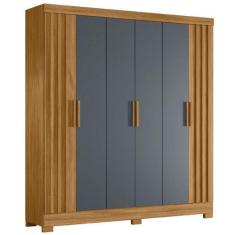 Guarda Roupas Casal Ripado 6 Portas 2 Gavetas Freijó/Cinza Valença Mov