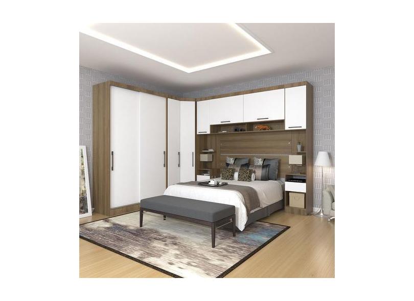 Quarto De Canto Casal Com Guarda Roupas Cabeceira E Mesas De Cabeceira