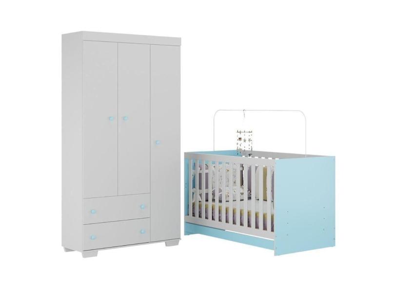 Quarto Infantil Com Berço 3 Em 1 E Guarda-roupas Algodão Doce Multimóveis Mp4247 Branco/azul