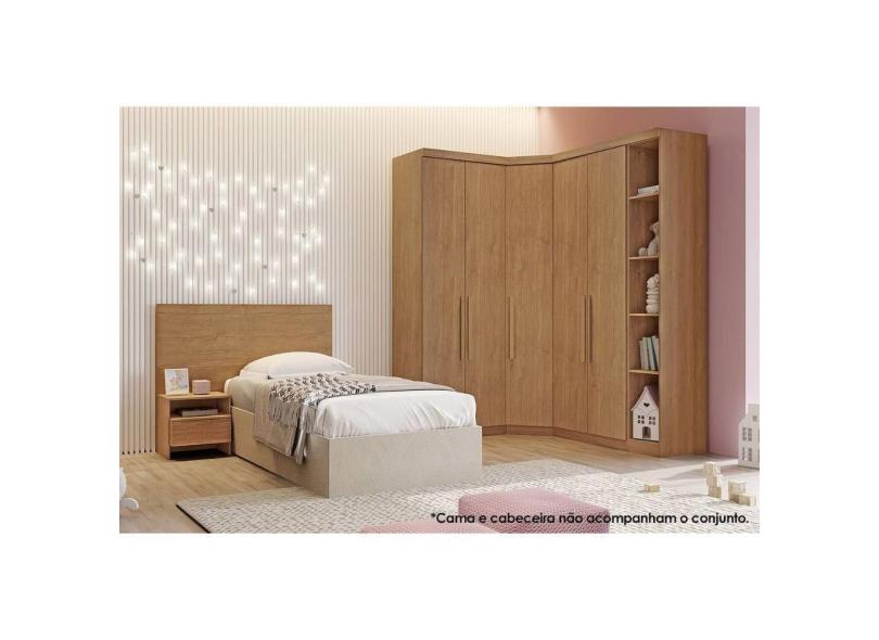 Quarto Modulado Solteiro Rizon 4 Peças (1 Closet 2 Guarda Roupas 1 Complemento) Qc209 Freijo Cumaru