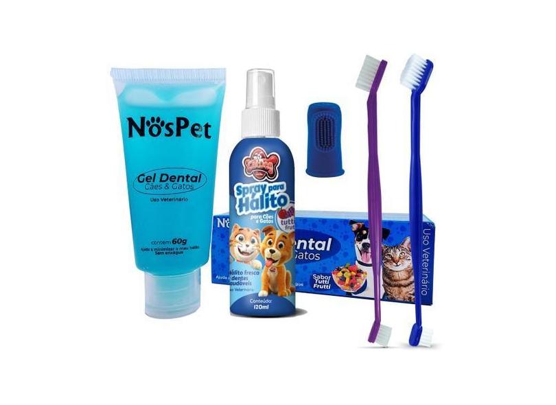 Escovas Spray e Gel Dental Kit Higienico para Cães E Gatos Petshop Nos