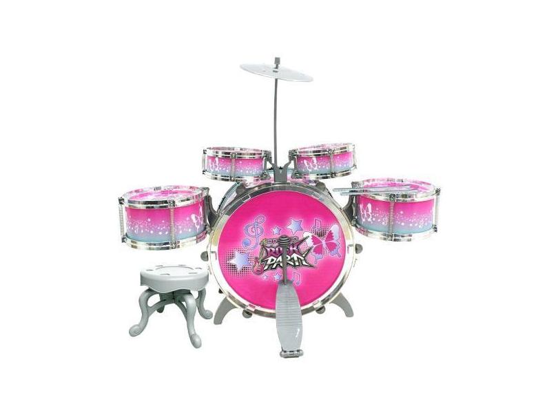 Bateria Musical Infantil C/ Banquinho Tambor Pedal Baquetas 51cm Dm To