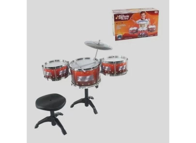 Bateria Musical Infantil com 3 tambores + Banqueta - dm toys